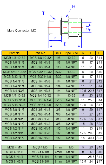 Nylon Tubing:: specified fitting size ± 0.004” max. (± 0.1 mm max.)